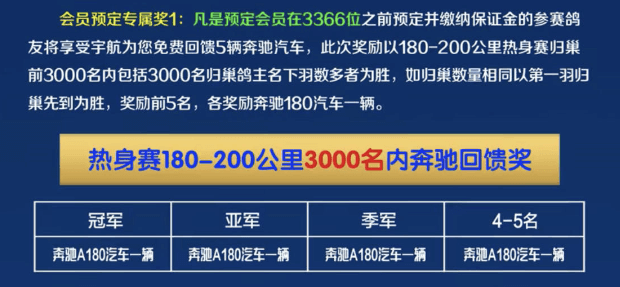 这一关的奔驰回馈奖,依然是大家关注的焦点之一。在收费站赢走三辆奔驰汽车的龙凤鸽业+影视鸽业-李学东,再次获得回馈奖的冠军,赢得一辆奔驰汽车。他们上笼317羽,当天归巢269羽,规定名次之内入围54羽,排名冠军。