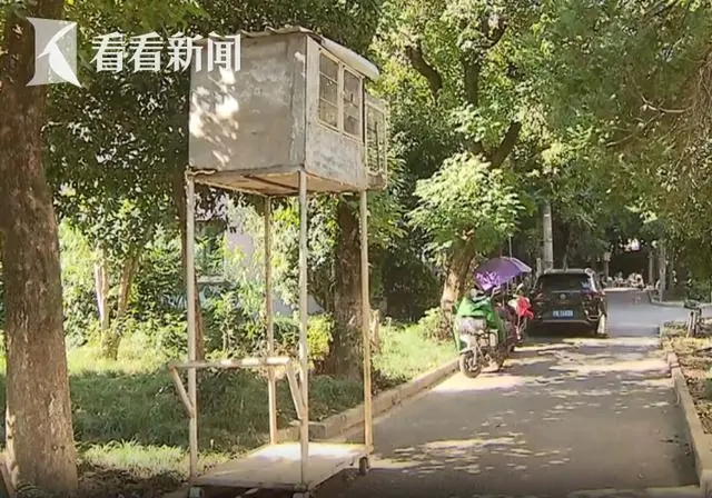 走进小区可以看到,这个移动鸽棚,约一层半楼高,像个瞭望台,底下有四个轮子,可以来回移动,上方是一个带窗户的铁皮棚子,棚内养了几只鸽子。