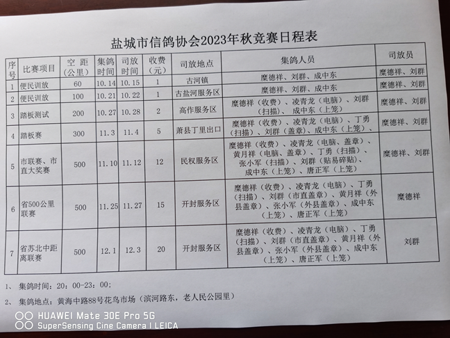 厉兵秣马上战场,在经过几站训放、测试赛后,江苏省盐城市秋季大赛迎来正式开局。11月10日,江苏省盐城市全市联赛、市直大奖赛进行集鸽,完成集鸽,共集鸽2744羽,将于11月12日早晨在河南民权开笼,比赛空距500公里,预祝本次比赛大捷!