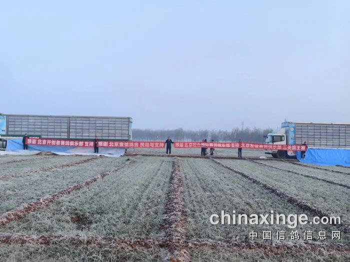 11月11日,第一关比赛进行集鸽,所有参赛鸽免费,许多鸽友冒着严寒,到现场交鸽参赛,热闹非凡,共计上笼了11865羽赛鸽!11月12日早上7点36分,比赛在漳河南开笼放飞,比赛空距380公里,万羽赛鸽喷涌而出,场面甚是壮观。