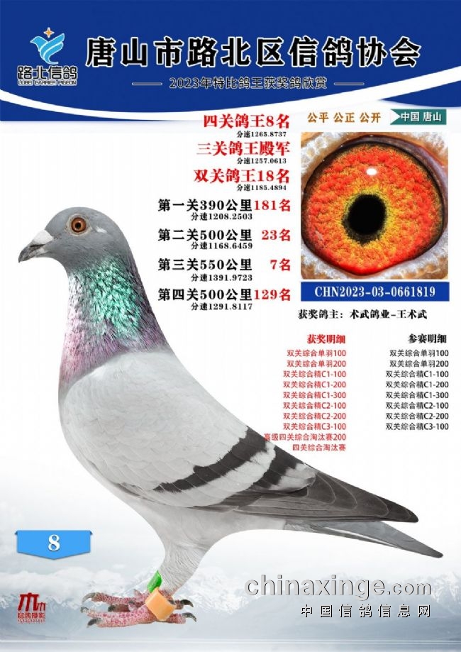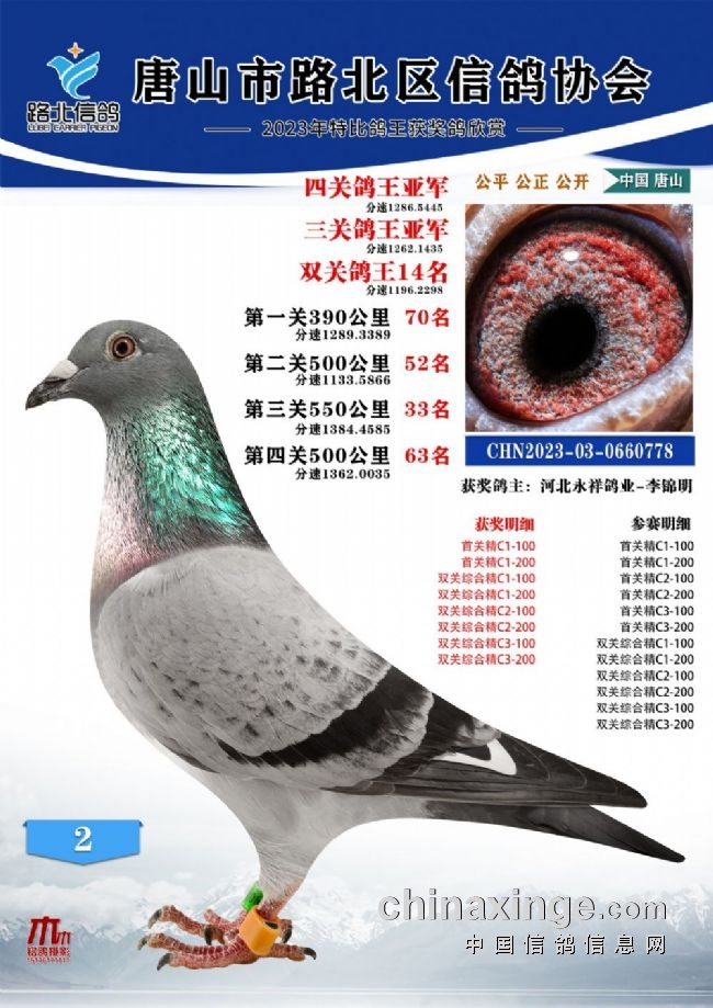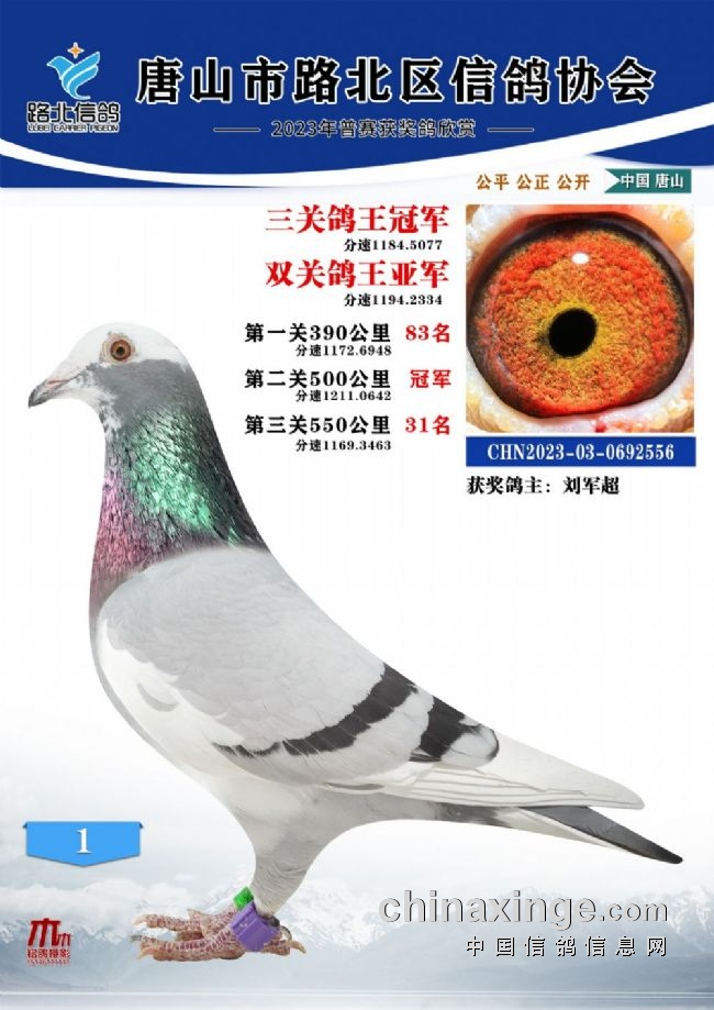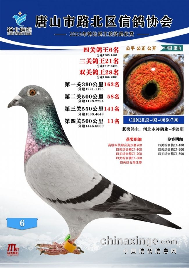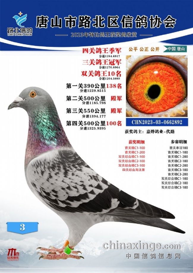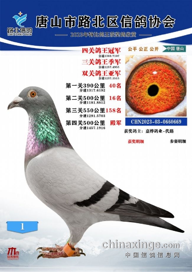 唐山路北协会2023年秋四关特比鸽王1—100名