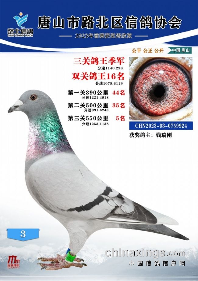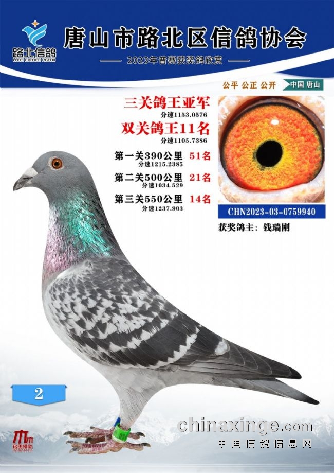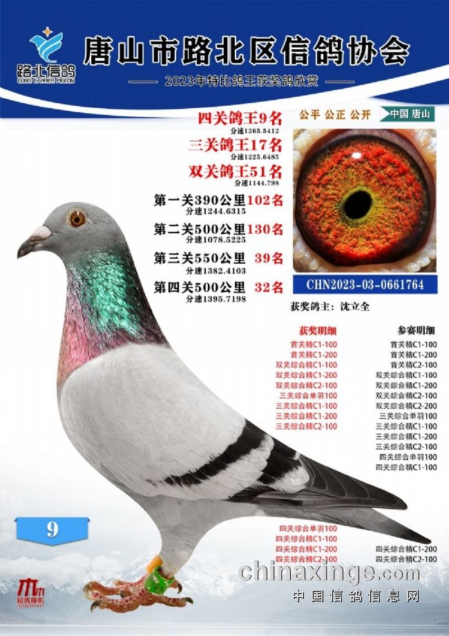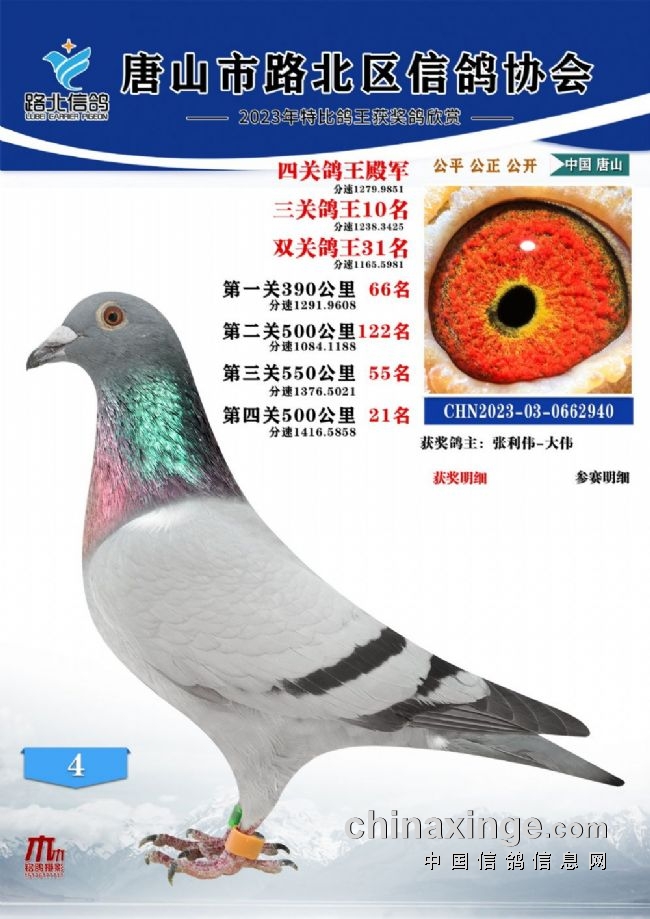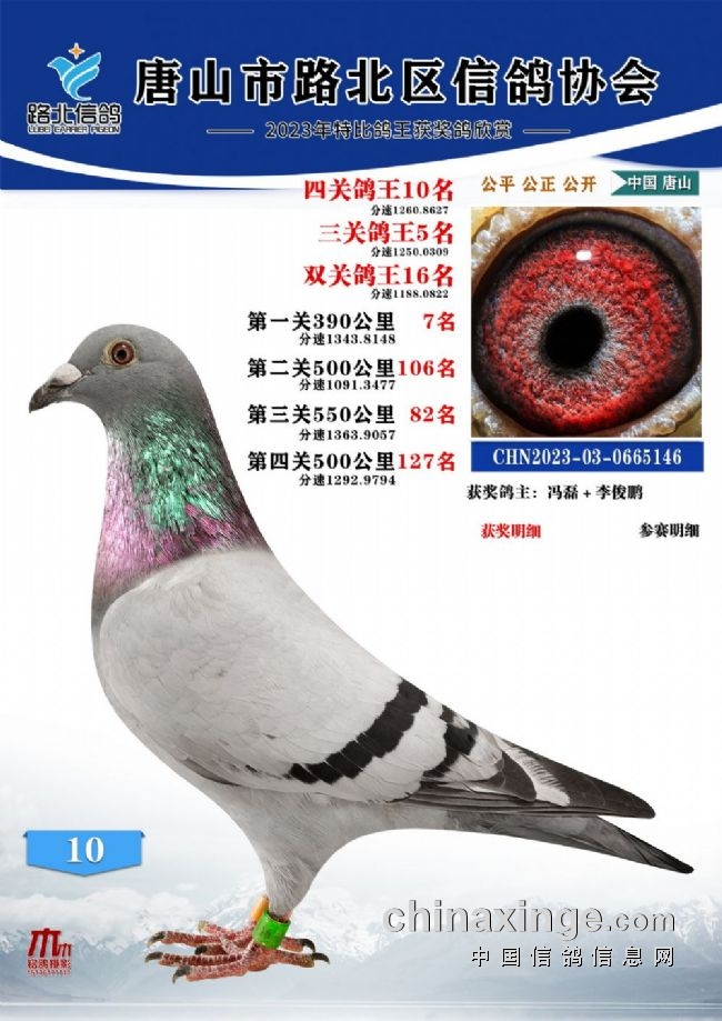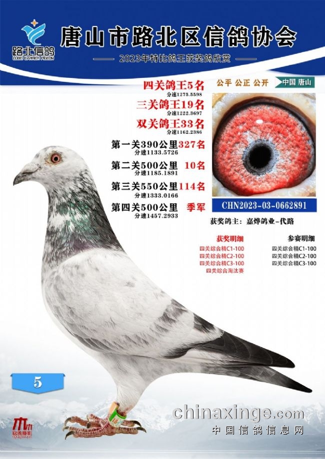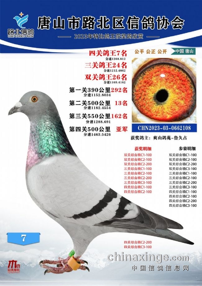 唐山路北协会2023年秋四关特比鸽王1—100名