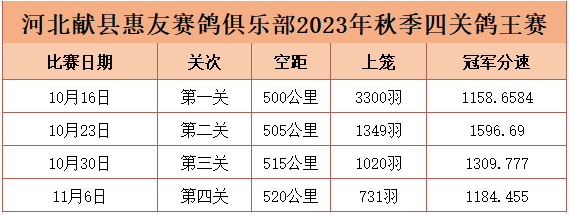 献县惠友2023年秋赛4羽单关