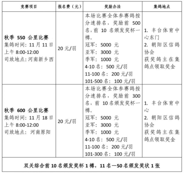 北京市信鸽协会2023年秋季600公里比赛比赛规程