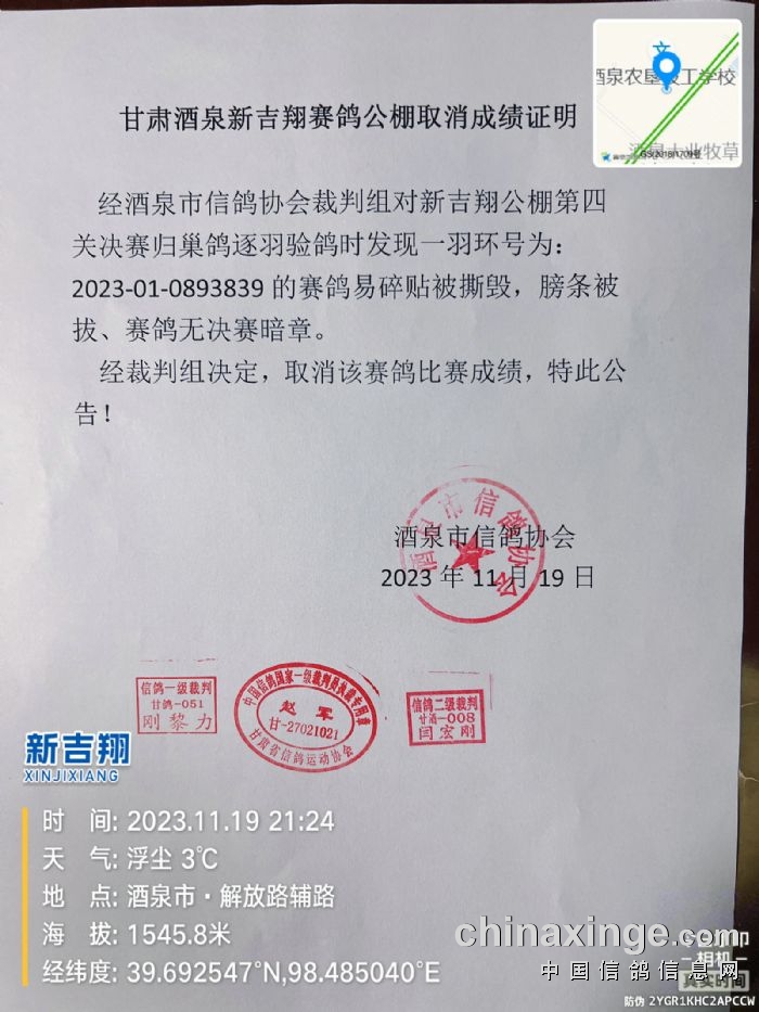 这是一场艰难的比赛,在前三甲诞生之后,陆续有赛鸽归来,截至晚上18点33分,当日归巢142羽赛鸽。次日继续报到,两天归巢380羽,其中第380名赛鸽(环号为2023010893839)易碎贴被撕毁,膀条被拔,赛鸽无决赛暗章,取消比赛成绩。因此决赛两天内,有效归巢379羽赛鸽,未能报满录取名次,剩余奖金由上笼未获奖鸽均分。