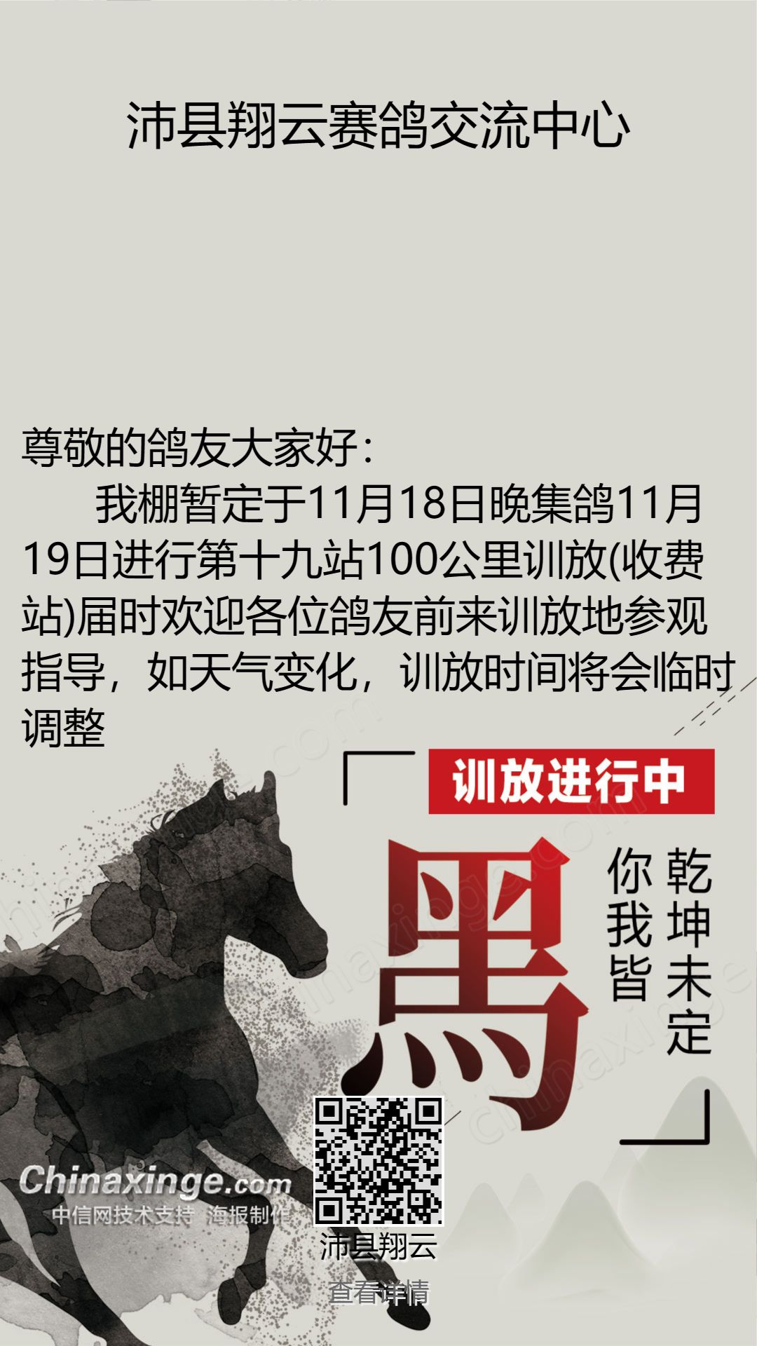 2023/11/19的放飞给鸽友们一年的心血和梦想在一场100公里训放中付之东流,现在千言万语也表达不了我对各位参赛会员的歉意。