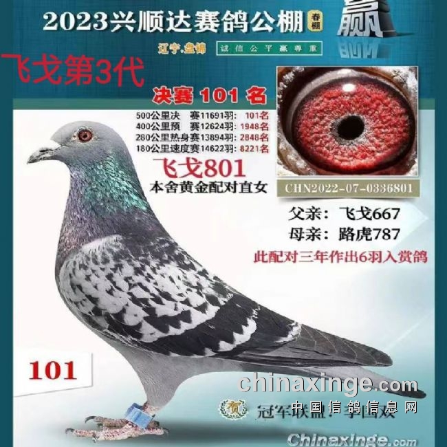 2023年春季比赛,一共交鸽8羽,交费5羽,入赏1羽,获得:决赛101名,中幸运奖,得3W。