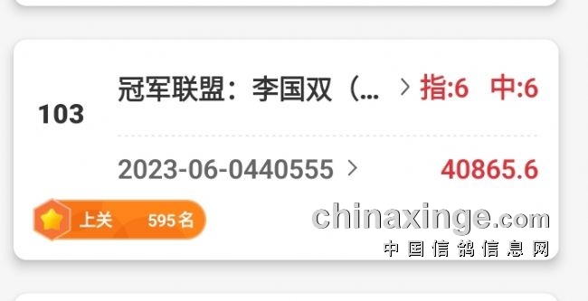 吉林大安信和公棚,决赛获得:103名,中幸运奖,得2W,这个103名,指定鸽指定6项全中,应2W多,一共得奖金4W多。