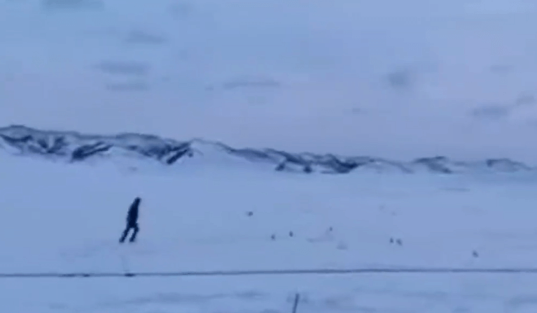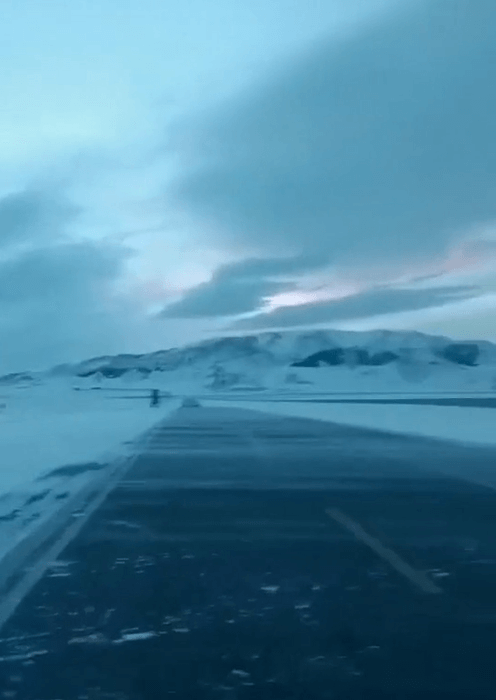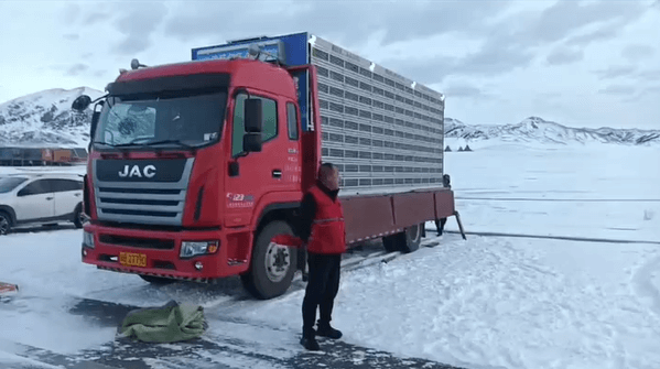 从比赛放飞的视频画面看到,司放地白雪皑皑,远处的山上也是冰雪覆盖,大风吹着雪粒在路面上滚动,参与司放的工作人员穿着厚衣服在鸽车前等候。
