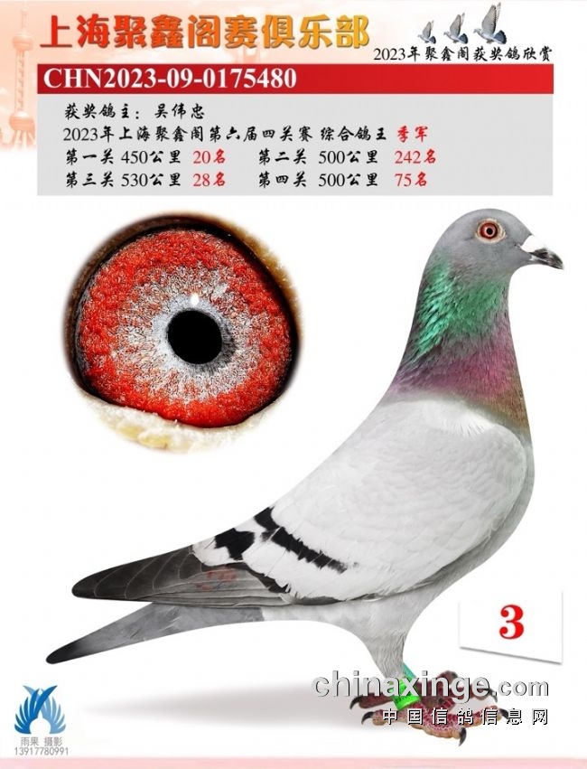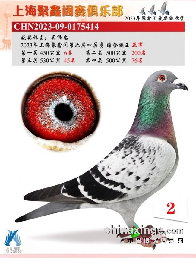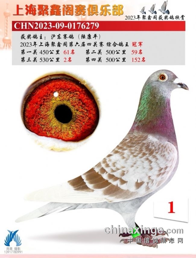 2023年上海市聚鑫阁赛鸽俱乐部第六届秋四关特比赛,200元+300元组售环2095枚,200元组售环6932枚。已于11月15日结束比赛,诞生375羽四关鸽王。