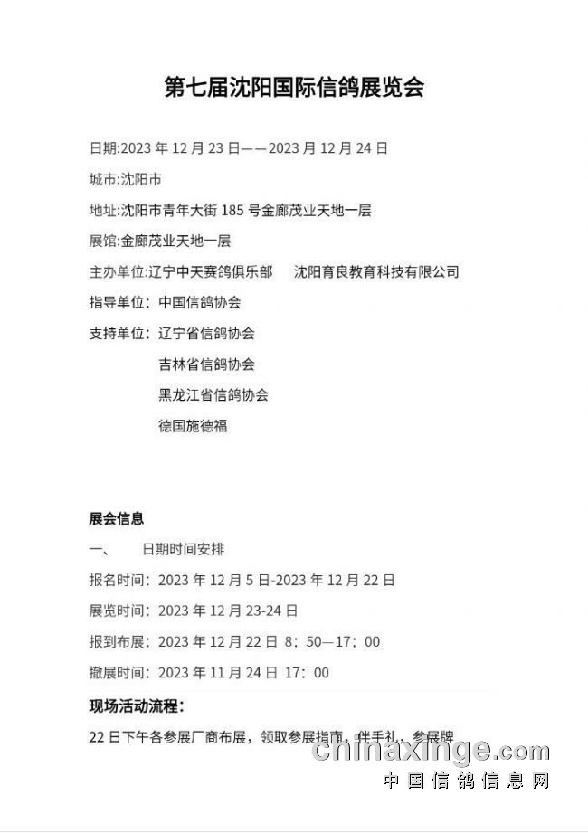 第七届沈阳鸽展12月23-24日开幕