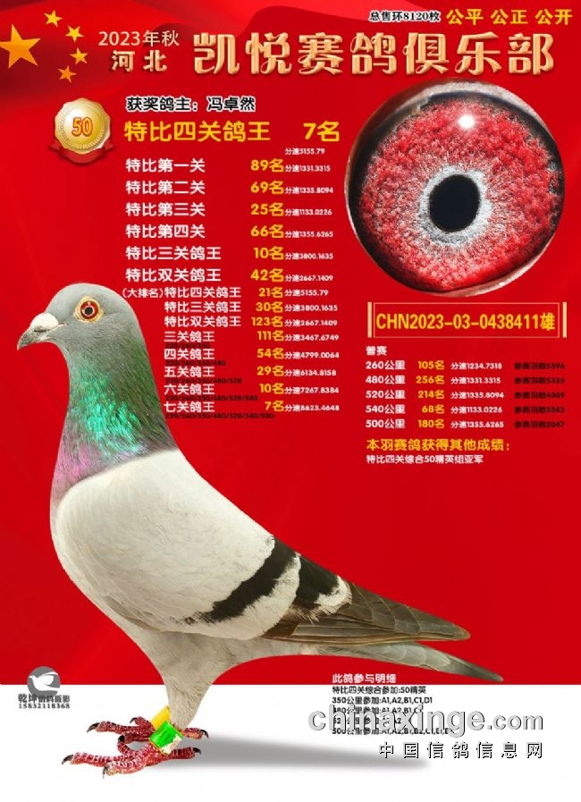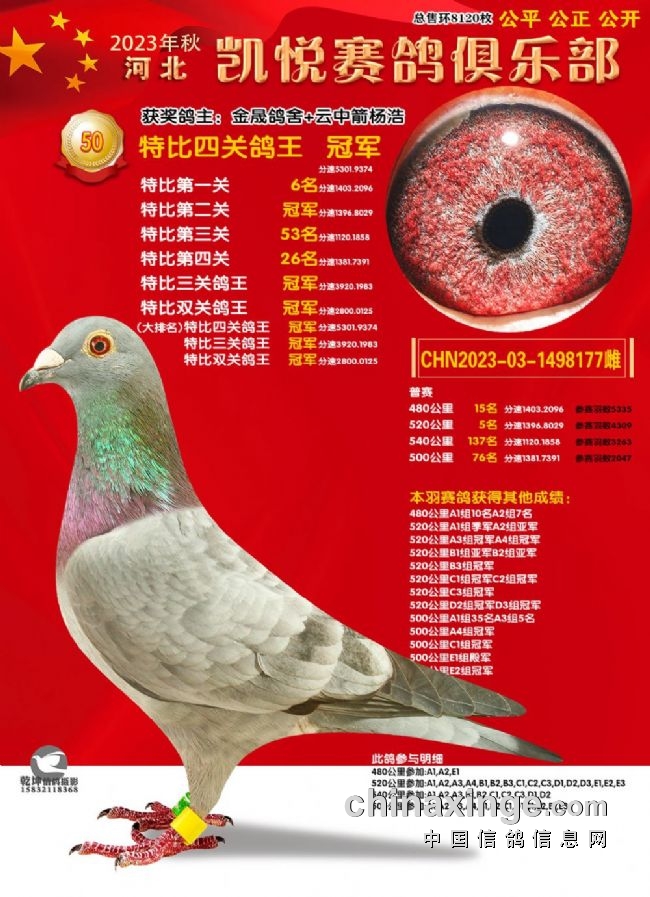 100组133名-冠军、300组15名-冠军、七关鸽王10名-冠军、50组冠军-344名