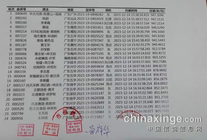 近日,全国各地受寒潮影响,均出现不同程度的降温、雨雪、雾天,放飞当日,江西地区也不例外,司放地临川有小雨,伴有迷雾,同时温差达到20度,给赛鸽归巢带来不小难度。直到下午15:38:54.419,首羽赛鸽才归巢报进,这是一羽来自中大兄弟-陈景山+细弟的一羽2023190898282灰鸽,分速947.3096米/分。截至当天,仅有31羽赛鸽凯旋,当日归巢率1.08%。