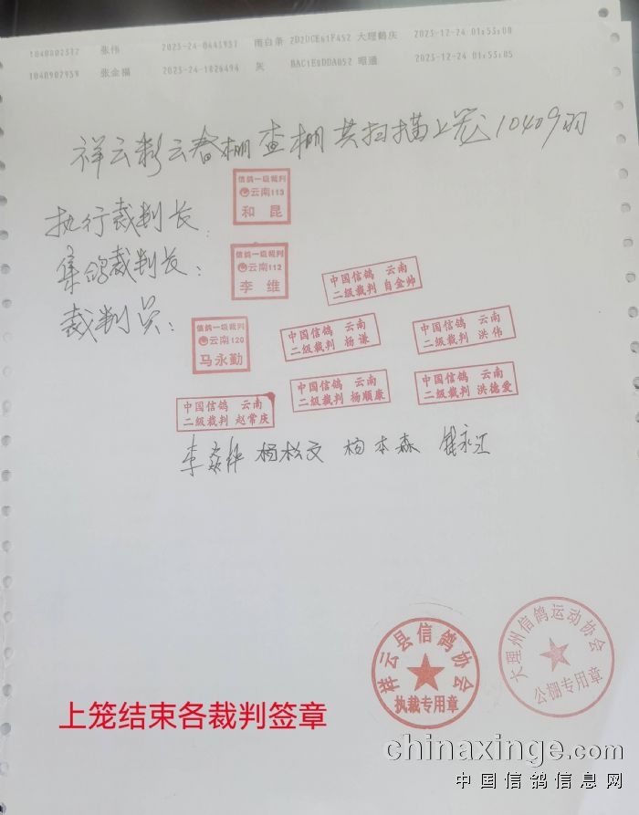 12月24日,云南祥云彩云种赛鸽竞翔中心(春棚) 20公里查棚站鸣枪。当天上午11点26分,10409羽赛鸽迎来春赛第一考,参考空距21.014公里,最高分速812.2232米/分,归巢9987羽赛鸽,归巢率95.95%。成绩直播>>