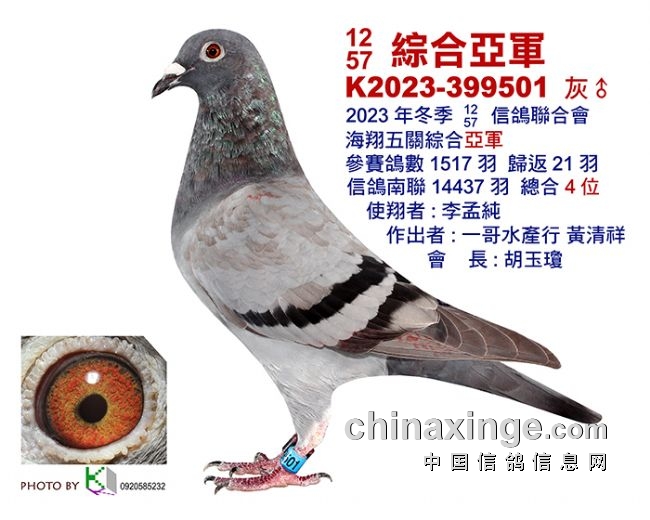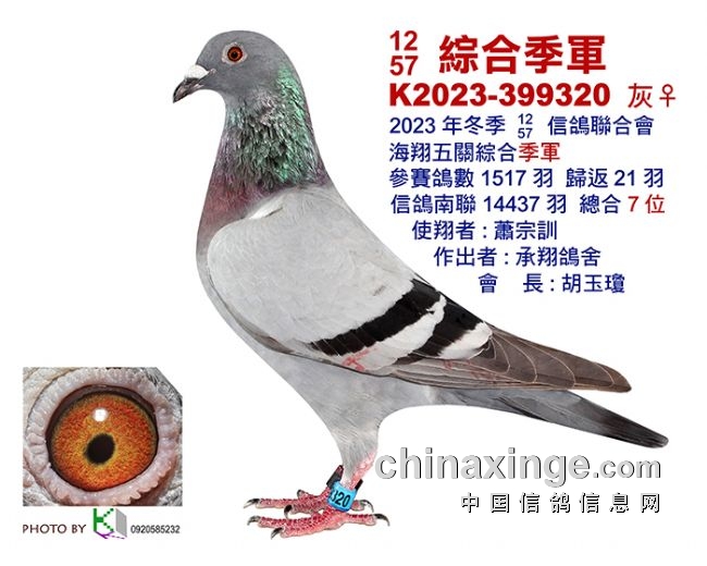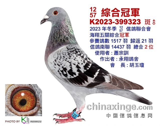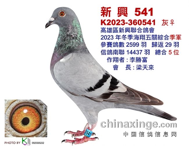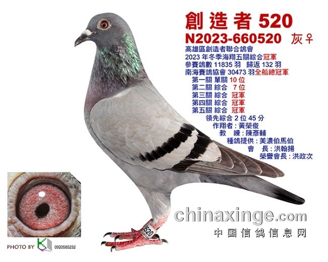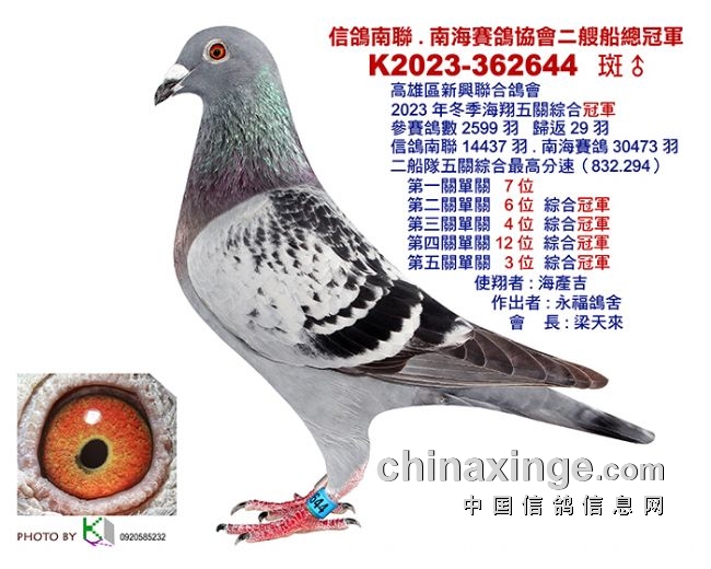 在这个冬季五关赛中,高雄新兴联合鸽会飞出一羽“神奇小鸟”,五关比赛四入前十名,表现堪称完美!这是一羽环号为K2023-362644的雨点黄眼雄鸽,五关分别获得一关7名、二关6名、三关4名、四关12名、五关季军,拿到鸽会双关、三关、四关、五关鸽王冠军,也是信鸽南联14437羽、南海赛鸽协会30473羽综合总冠军。