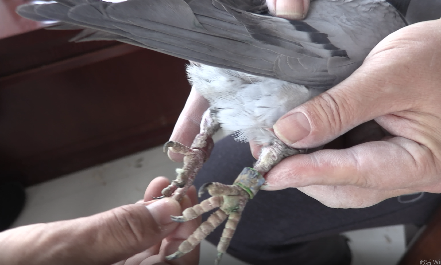 另一羽为2023-03-2056316雨点鸽,获得517名。其防伪封环经过鉴定,不是原始封环,属于人为揭开后拼接而成。