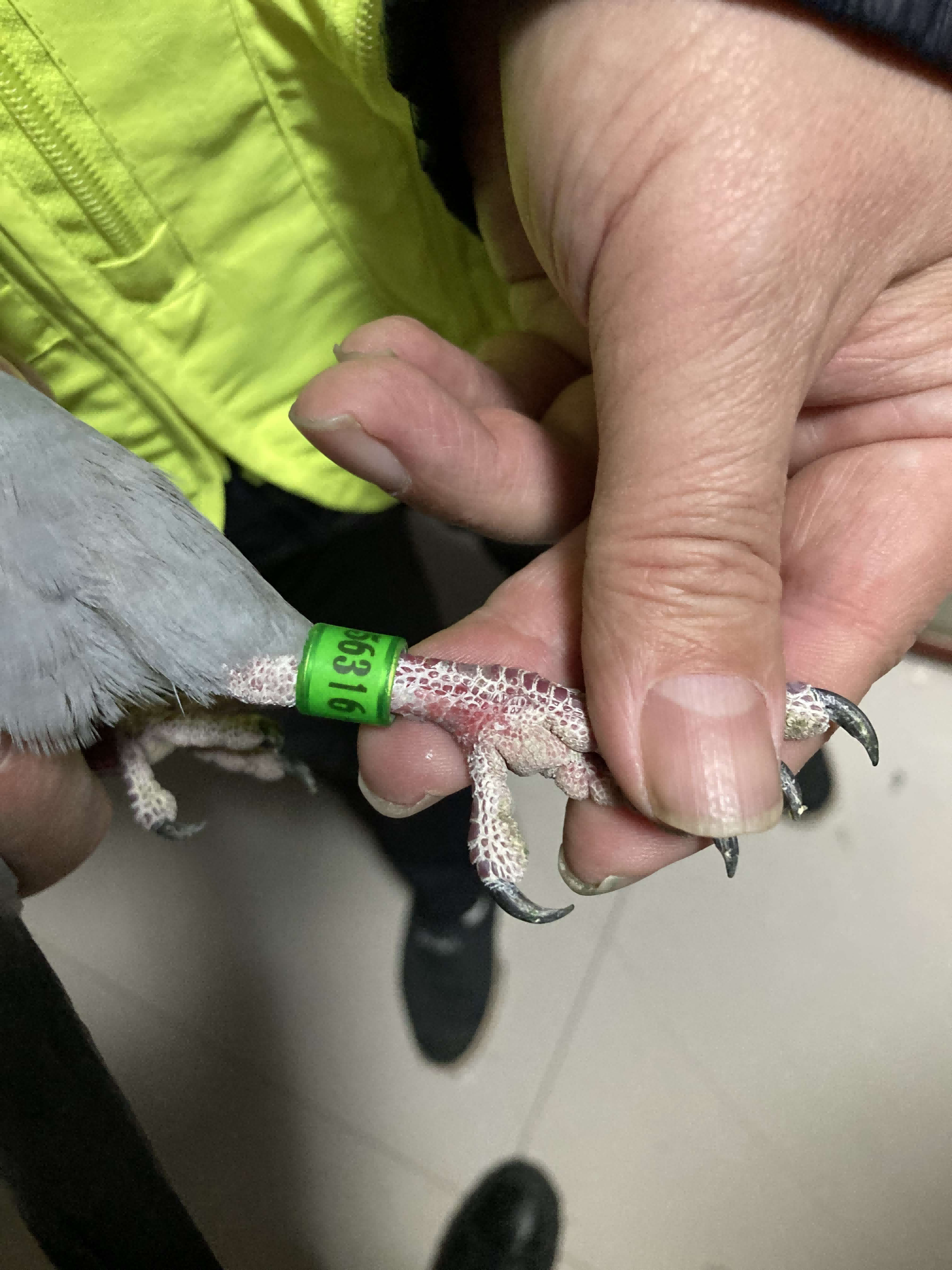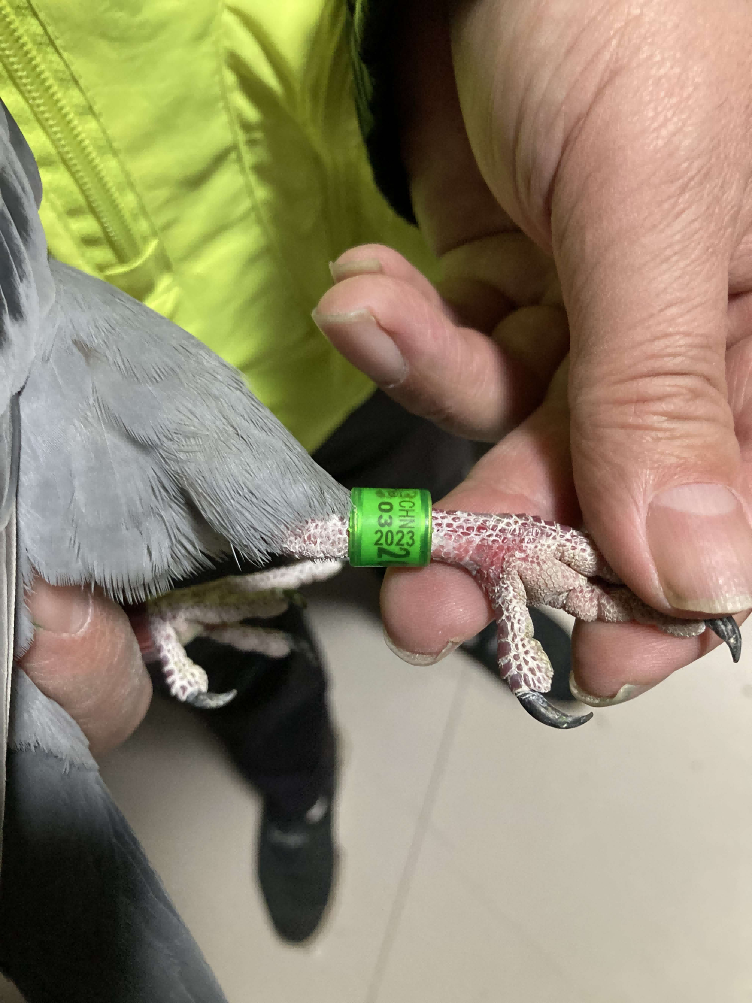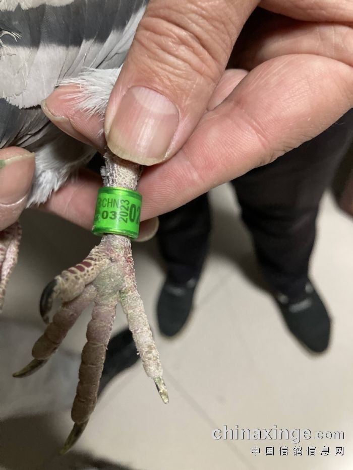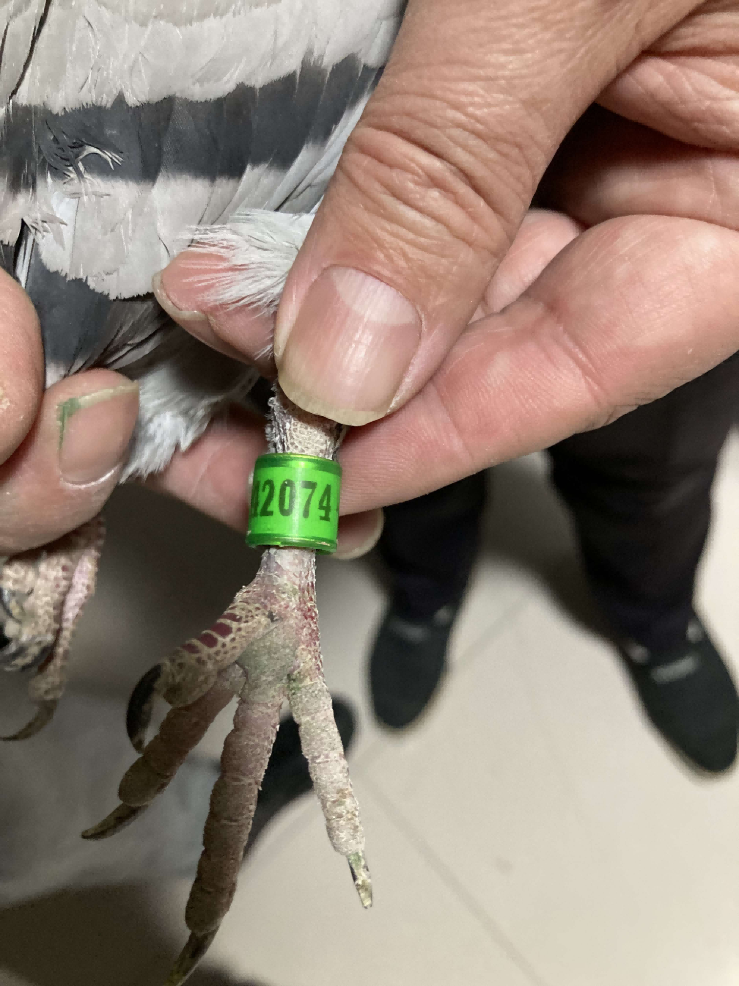 其中一羽为2023-03-0242074灰鸽,获得决赛467名,其防伪封环在归巢前已经被人为揭开,防伪印记已全部显现。