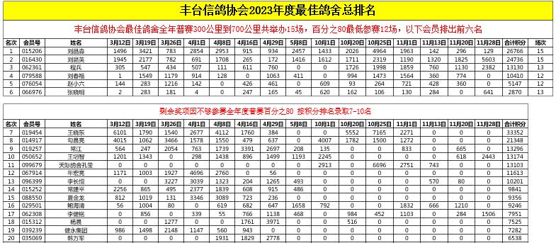 点击查看丰台鸽会2023年度最佳鸽舍总排名