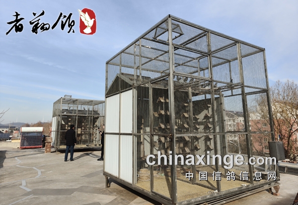 桑老师的鸽舍不大,每栋加上晒棚也就十多个平方,晒棚又将鸽舍全部罩住,确保鸽子到棚顶上晒太阳也不会逃笼。每栋鸽舍又分成三个隔断,每个隔断放置三四对巢箱。如此算来,桑老师鸽舍的配置,最多只能养40几羽鸽子。经过我们和桑老师证实,也的确如此。