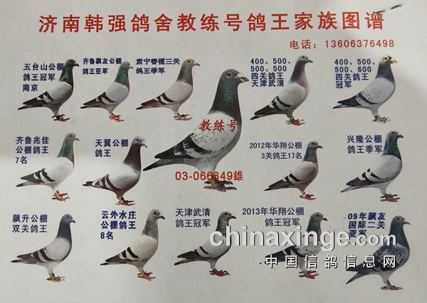 养鸽子就是以鸽服人,用成绩说话。因为一次引种,桑老师和韩强成了好朋友,有了“教练号”之后,他作育参赛都会听取韩强的意见。在采访中,桑老师很少谈及自己养鸽的心得,也不愿提及自己的赛飞成就,但说起“教练号”便能滔滔不绝。从他的介绍中,我们知道了“教练号”这羽传奇铭鸽,成就了许多鸽舍。