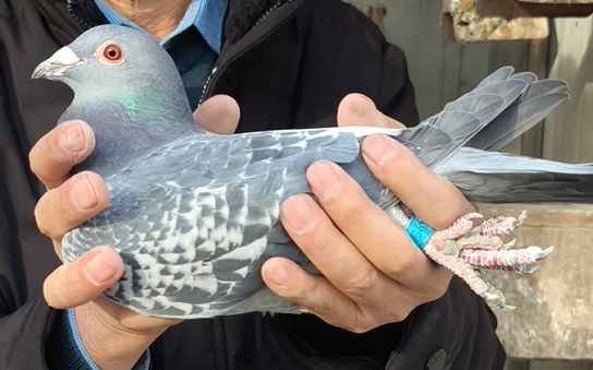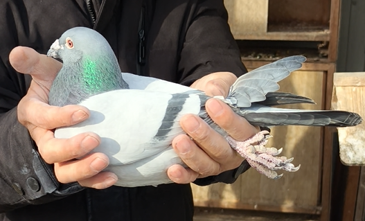 回来后,两只幼鸽我送给了鸽友,只留下买来的一雄一雌,后来黄眼雌鸽飞丢了,只剩下一羽砂眼雄鸽。我开始启用这羽鸽子配对作育,后代飞得相当不错,尤其是在2019年的一场500公里比赛中,它的后代在当地鸽会飞了2、3、4、5、6名的梦幻成绩,此外还有400、500公里的双关鸽王等成绩。也正是因为“教练号”的出色表现,现今在我20多平的小鸽舍中,就有“教练号”纪念环的两羽直子,四羽直女,在鸽棚中有着绝对的位置。