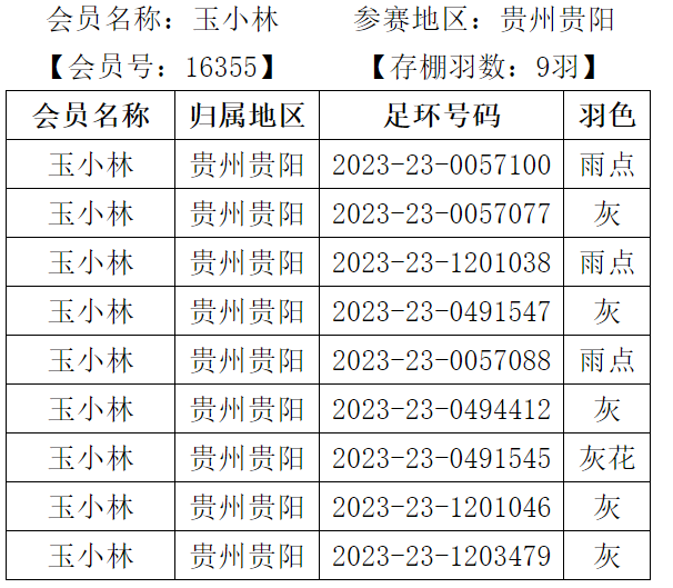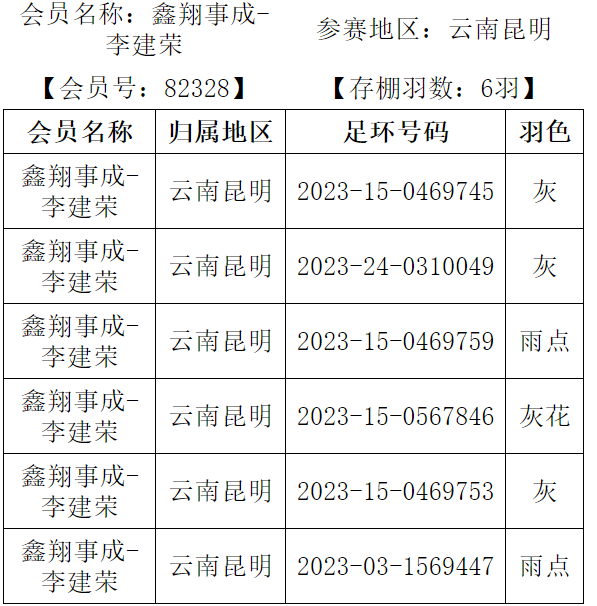 根据会员信息显示,四位会员累计参赛鸽有24羽,最少的为2羽,最多有9羽。天南铜都赛鸽中心春棚今年是第二届春赛,每羽参赛费为2600元(含饲养费300)。由此可得,本次免除参赛费用共计62400元。公棚此举,尽显鸽界之大爱。