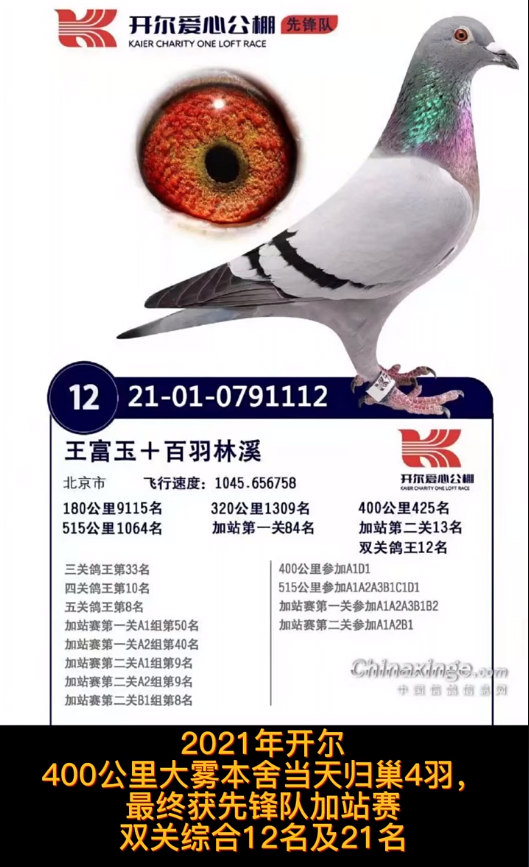 答:当年去开尔飞那团体冠军的时候,你说心里边完全有底,也不可能,那么大羽数,那么高档次,但是因为咱们自己家使的这个家族稳定性还是有,所以去打一趟试试。别的朋友说有稳定性的时候,看看去开尔能不能行,大赛场能不能行。然后去了以后,第一届咱们是交了6只,获奖4只,确实也不容易,那路鸽子从稳定性上、速度上还可以,正好那年也适合咱们鸽子的这个分速。