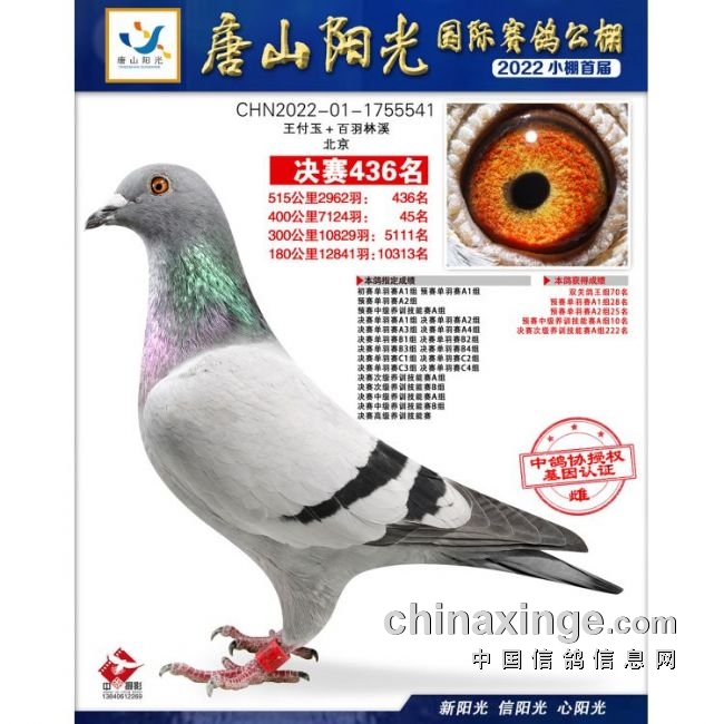 我们当年唐山阳光那只鸽子,前三关飞得都非常好,应该是排在鸽王前20名了,最后决赛的时候,我查了一下,大概是一个大群体的鸽子都走到海边,全绕回去了,这一折返就是80多公里,这80多公里再往回飞,那会人家都已经超你100多公里了,咱回来还入奖吗?然后查的公里数,应该是飞了700多公里,当天飞700多公里还能入奖。所以我就认为,在唐山这块,还得稍微够长一点,短一点身形的,到海边可能就跟着一块走,控制不住了,不一定能上来了。就是鸽子的身形还是有助于它打这个艰难赛事,结构还是得扎实。