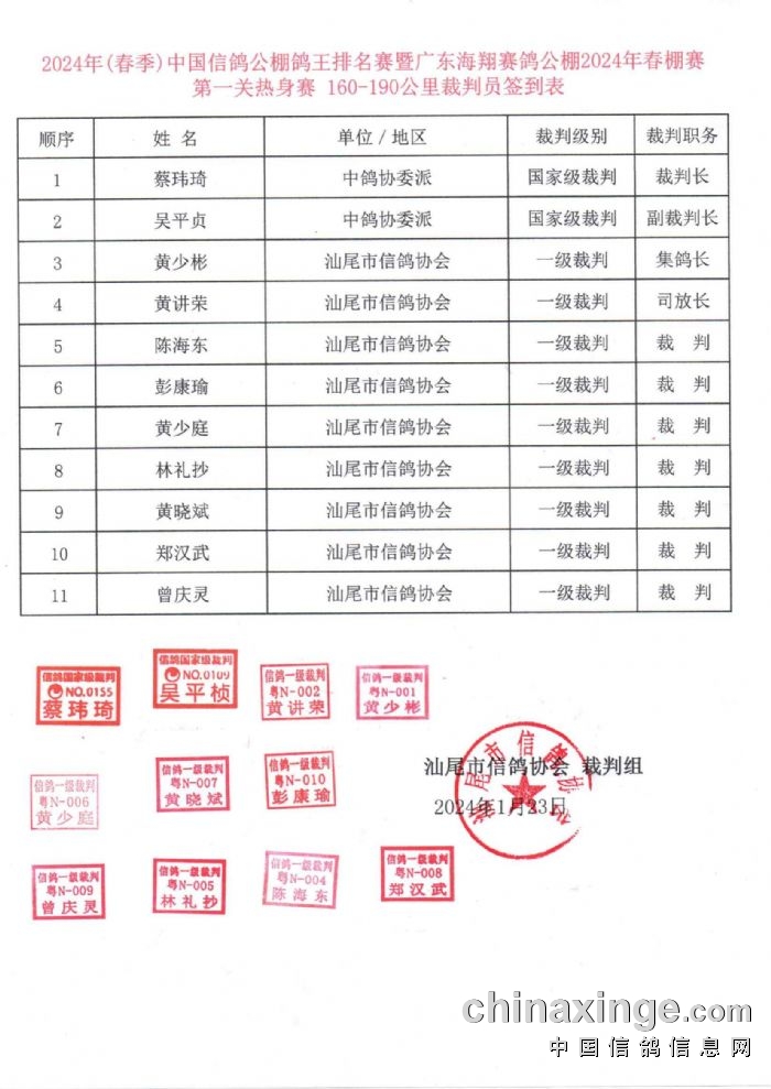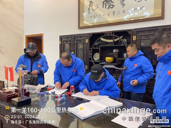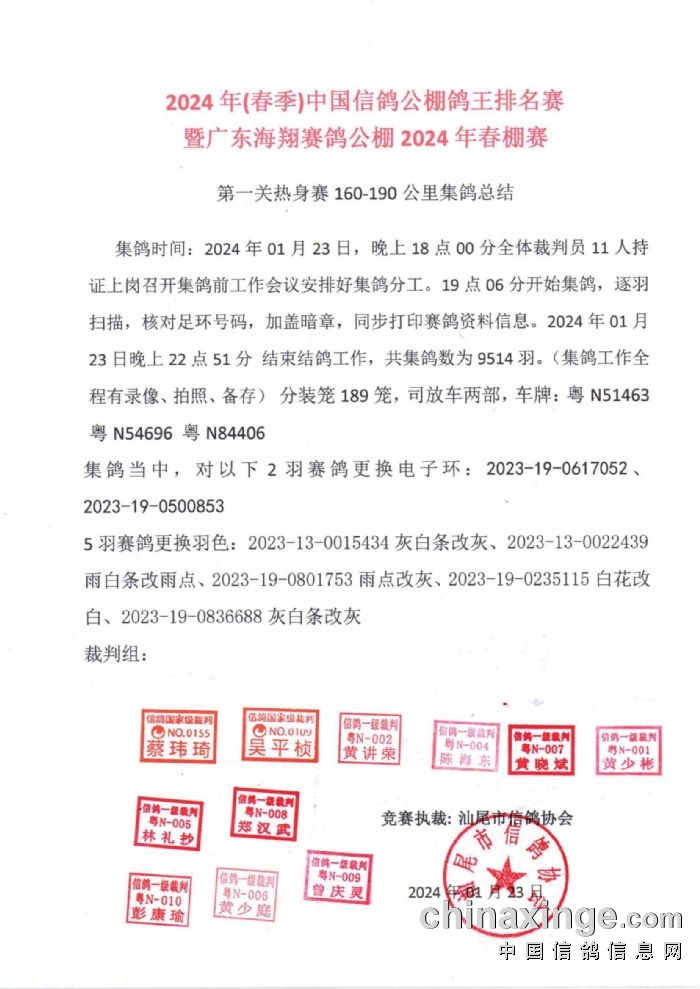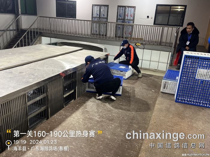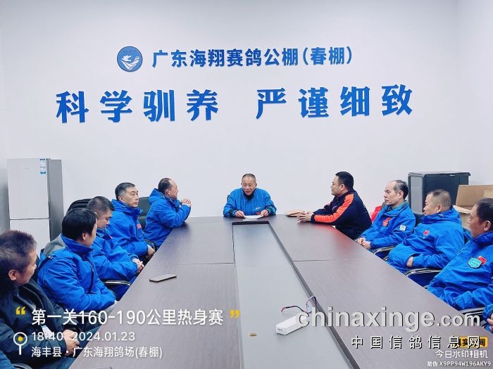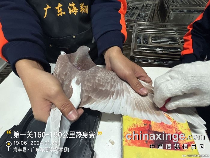 广东海翔赛鸽春棚2024年第一关160-190公里热身赛于1月23日完成集鸽9514羽,1月24日08:54:42在广东饶平县放飞,实际空距180.78公里。