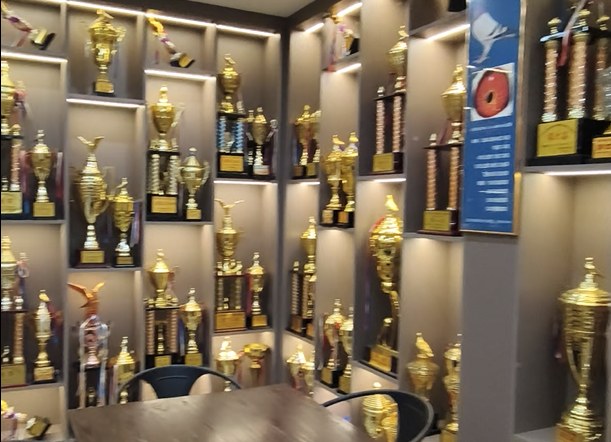走进他的鸽舍,满墙琳琅满目的奖杯,无声地宣告着这位赛鸽强豪的光辉战绩。他说这仅是特别有纪念意义的才摆在这里,因为每年都有太多的奖杯,最多一次在本地鸽会就领了88个,要用皮卡车往回拉,这么多年下来,多得根本没地方放。最近让工人当废品处理的都卖了一千多块。简单地交流,立刻就能感受到强豪的豪气,也难怪会让人妒忌。