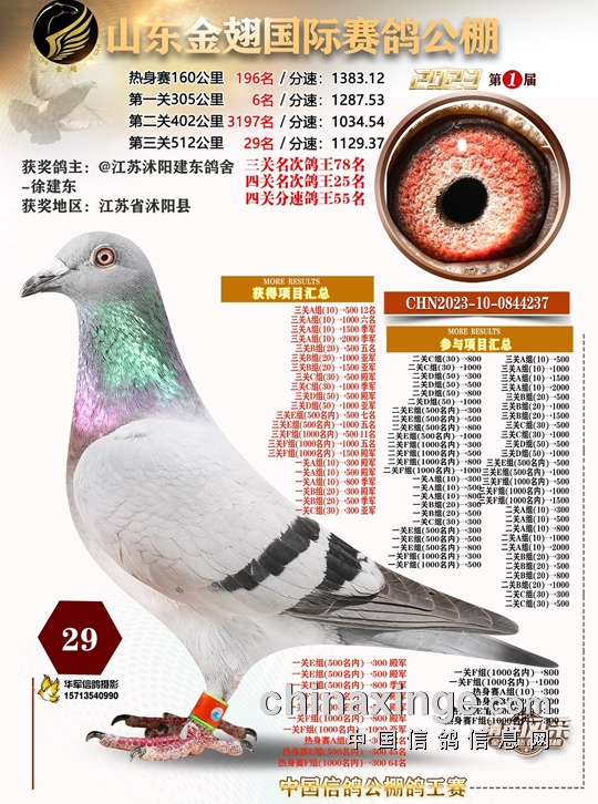 注:徐建东的奖鸽太多,成绩太多,仅发几羽作为赏析。