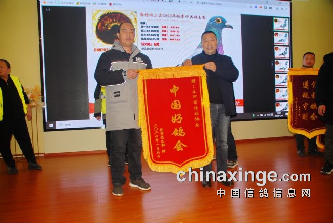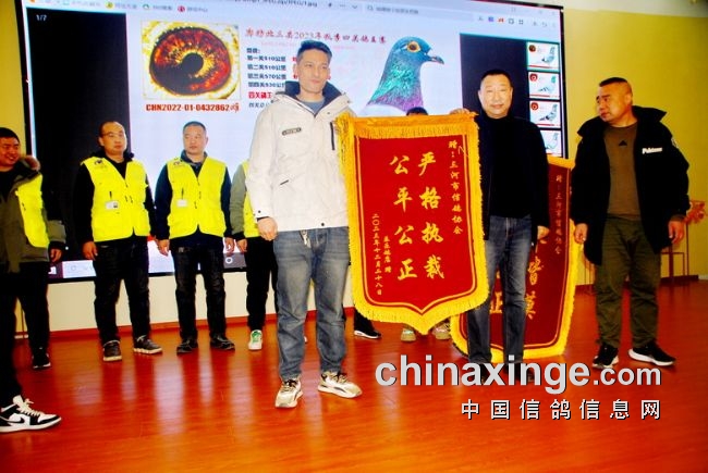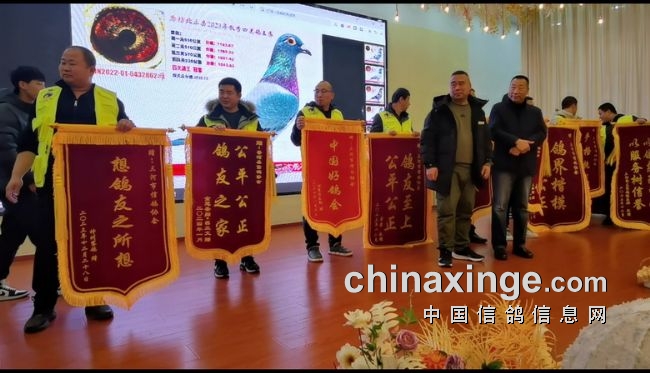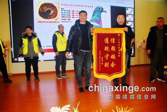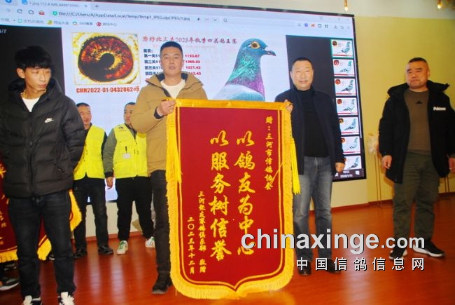 紧接着有近20位鸽友向鸽会赠送了锦旗,表示对鸽会工作赞扬和支持。