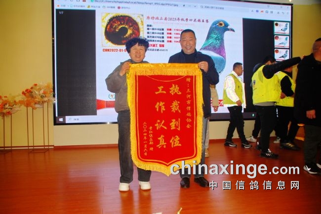 2024年1月13日,三河市信鸽协会举办了隆重的获奖鸽颁奖典礼拍卖会,有近150位鸽友参加了此次拍卖会,7羽四关鸽王获奖鸽参加拍卖。拍卖会由裁判长张燕春主持。
