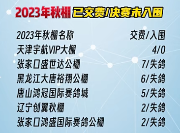 2、张家口盛世达公棚:交费7羽,失鸽。