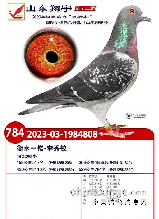 7、山东翔宇秋棚:交费两羽,入围一羽,获得784名。