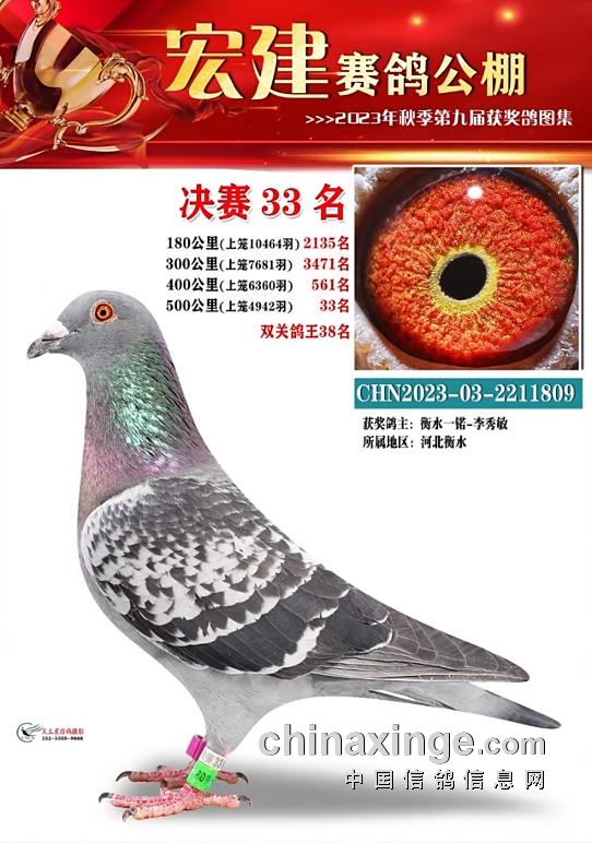 3、河北宏建公棚:交费3羽,入围一羽,获得33名。