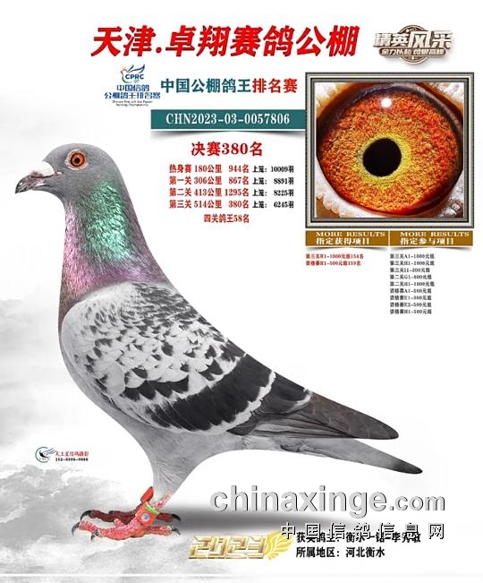 5、天津卓翔俱乐部:交费一羽,入围一羽,获得380名。