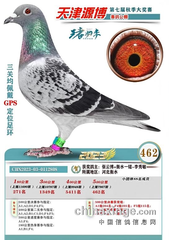 6、天津源博公棚:交费两羽,入围两羽,分别获得462名、971名。