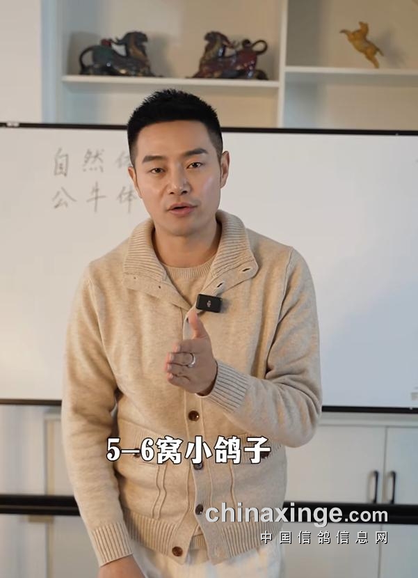第二种方法,雄鸽放在中间的一个笼子里面,这个笼子是铁笼,四面都可以看到围上四只雌鸽,这雌鸽里面都会有巢窝、适时的水槽、沙子。那这只雄鸽,对着这4只母鸽子,它都很熟悉了,它就会在这边咕咕咕地叫,这4只雌鸽如果都有状态的话,都会散尾,在叫的时候,它的体内就开始分泌雌性激素,然后它的蛋就开始生成。大概到四天左右的时候,这只雄鸽配下雌鸽,然后鸽主把它放回去,休息片刻,然后再放到另一个巢窝,配下一个。一天每个雌鸽都会轮流配一到两次,那就意味着,这只雄鸽在十天内可以生4窝蛋,4窝就是8只。最厉害的公牛体制,一年可以生到200多只子代,所以说想快速创造更大价值的时候,采用公牛体制一定是不二首选。