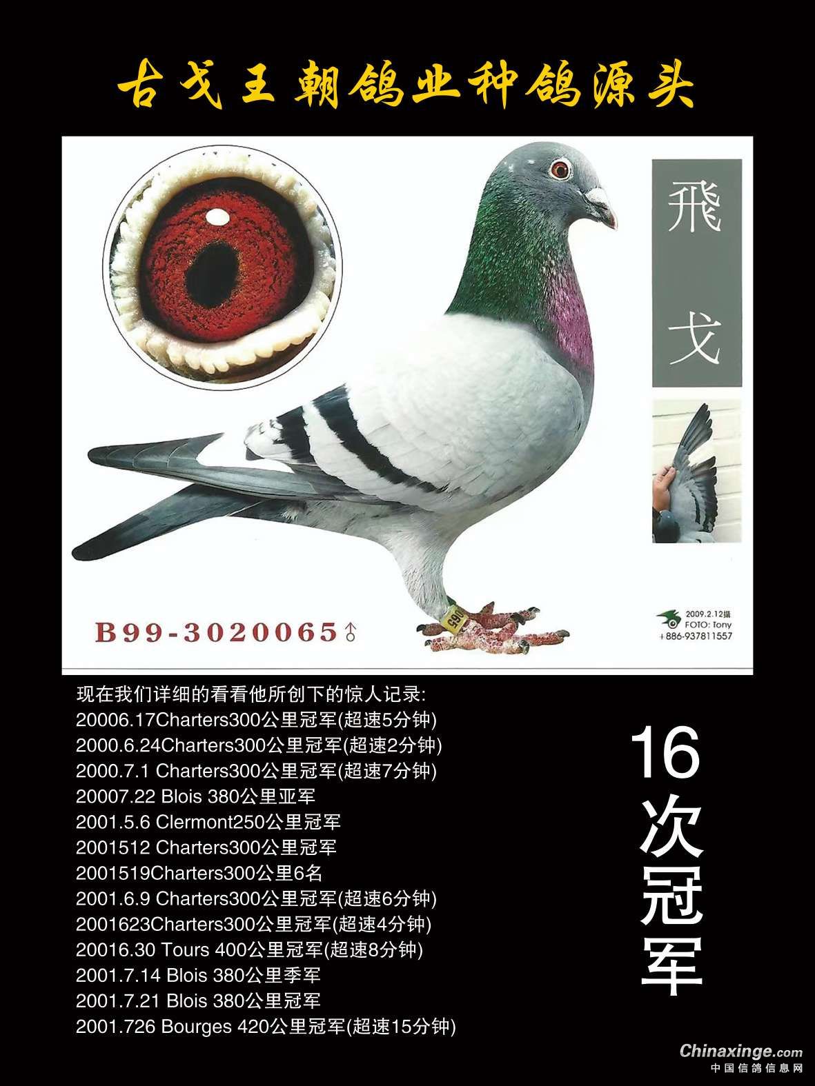 2001年波治420公里12266羽全国总冠军;