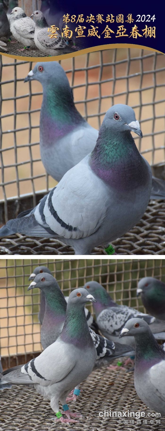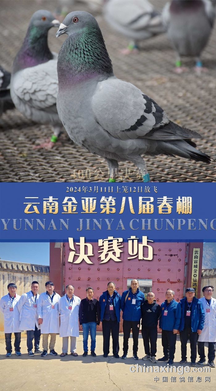 1、云南金亚赛鸽中心(春棚)第8届决赛站于3月12日在大理弥渡境内放飞,空距400公里,有效上笼3010羽。本次比赛由曲靖市宣威市信鸽协会委派裁判员执裁,共有执裁裁判10人其中一级裁判9人、二级裁判1人,保证比赛公平、公正。本届比赛参赛费1099/羽,决赛取700个名次,其中冠亚季军分别奖励20万元,4-10名各奖励10万元,11-500名各奖励1.1万元,501-700名各奖励6000元(交保证金可得)。