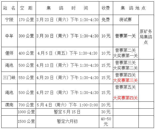 其他加奖待赛前通知,请大家注意泉山鸽会网站及微信群通知