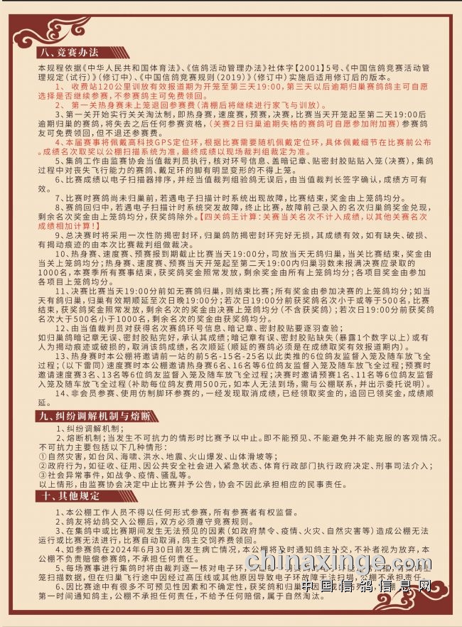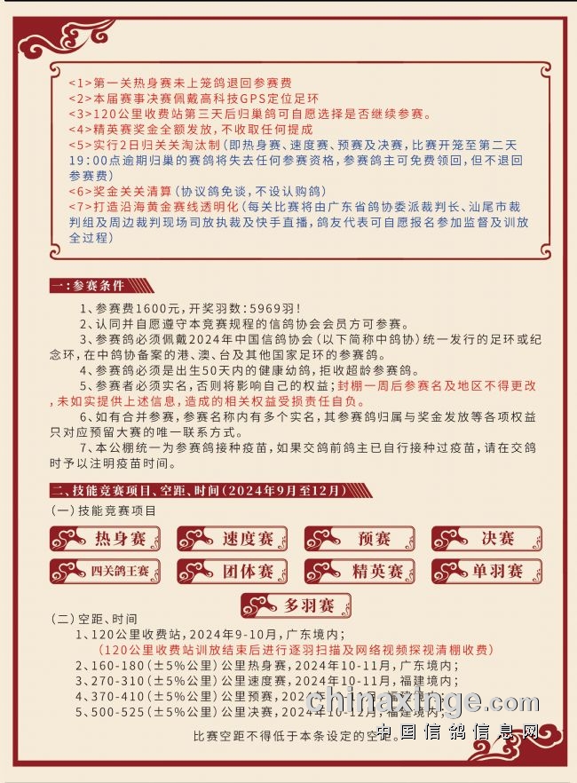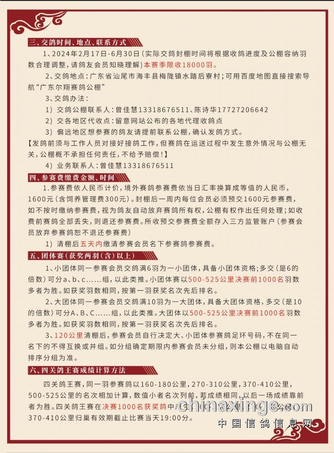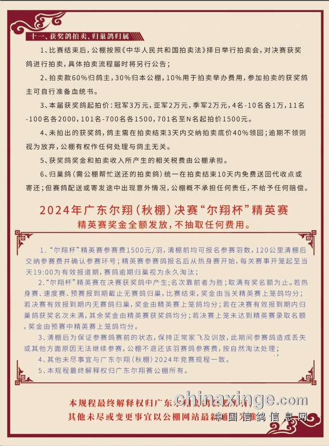 详情见附件:广东尔翔赛鸽公棚2024年秋棚竞赛规程(草稿)