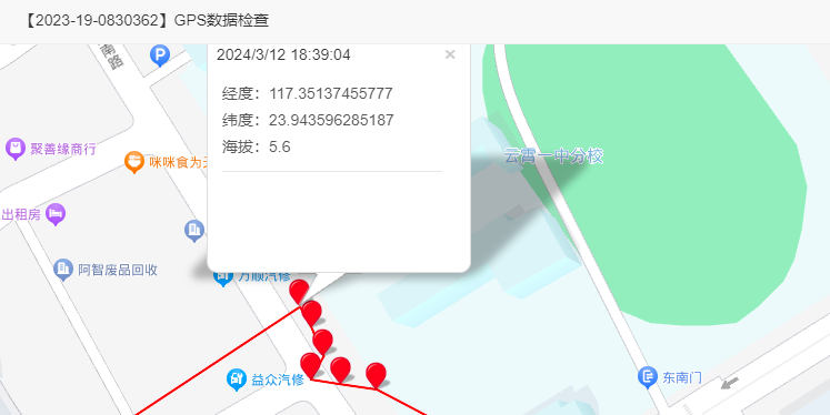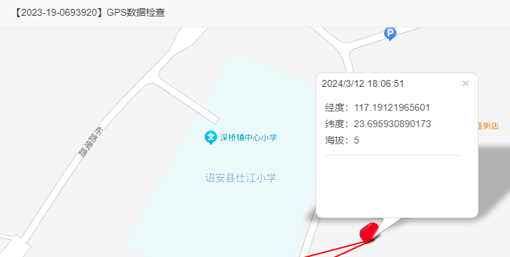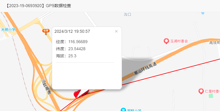 5、环号2023-19-0459230,名次:487名,从轨迹与数据上分析,该羽赛鸽于2024年3月12日14:42:40海拔高度:4.9m,在云霄创新幼儿园附近停留,17:50:44在揭普惠高速行驶,19:57:37到达公棚附近。