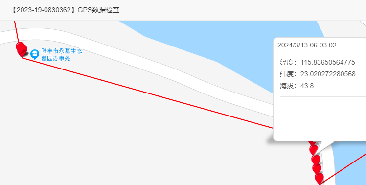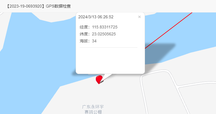 2、环号:2023-19-0830362,名次:482名,从轨迹与数据上分析,该羽赛鸽于2024年3月12日18:39:04海拔高度:5.6m在云霄一中分校停留,后续路段持续于屏蔽状态,2024年3月13日06:03:02到达公棚附近小路后至陆丰市永基生态墓园办事处附近。