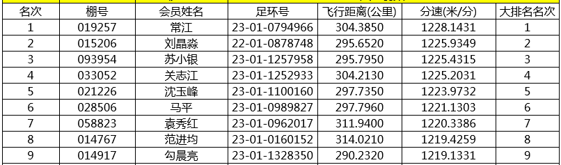 11点24分22秒,苏小银的23-01-1257958赛鸽,飞行295.795公里,分速为1225.4315米/分,获得西部赛区季军。在西部赛区高位成绩中,京城名家争锋,马平、勾晨亮、刘昆英、程兵、王垲智等均榜上有名。