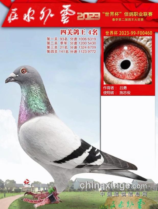 刚才讲到了,作为赛鸽来讲的话,眼睛可能色素淡一点亮一点,有利于它的比赛。那从做种上,我也是倾向淡的眼睛。我在云外水庄打了四季,我自己的鸽子,基本上每一场都有第一梯度或者是前50名,但是我的种鸽眼睛也特别淡,谁来到这里看都笑。