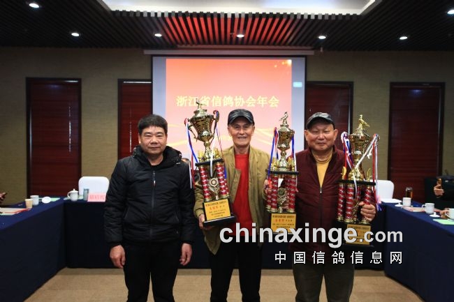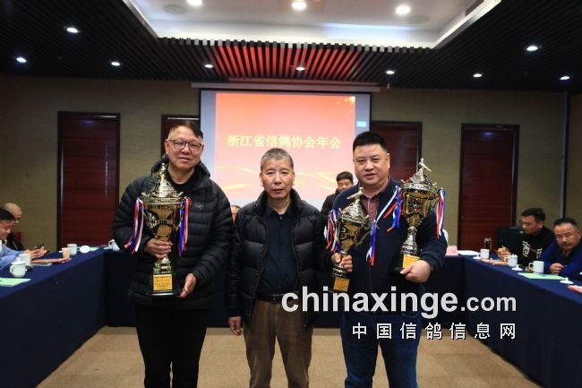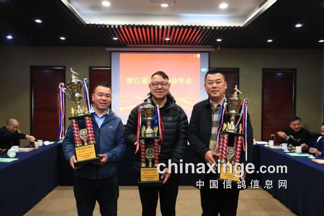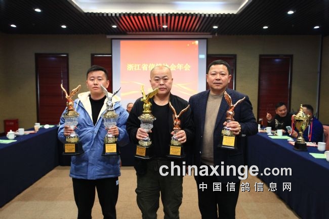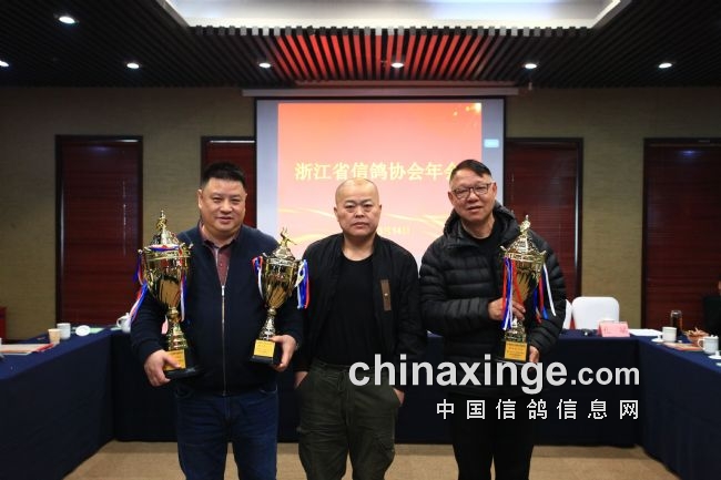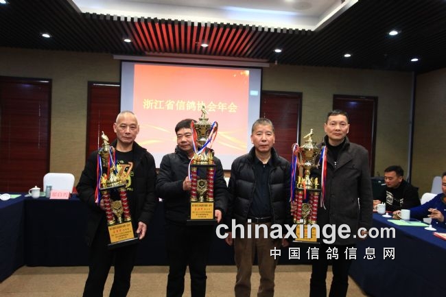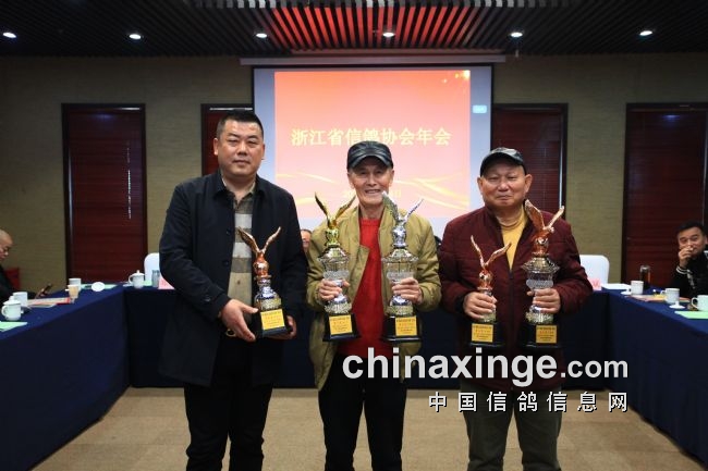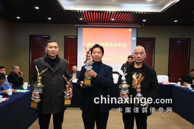 浙人爱鸽,浙人有信,欢聚时光难免短暂,相信在省信鸽协会领导下,我们期待来年的相聚与胜利。年会高潮阶段,同时也是激动人心的时刻,一年的汗水一年的期待终于换来满满的喜悦与金灿灿的奖杯。省鸽协领导逐一为获奖者颁奖并留影纪念。