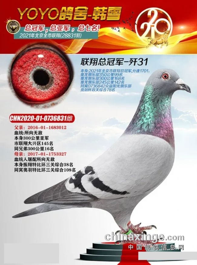 年份 总羽数 总冠军 隶属鸽会 冠军分速