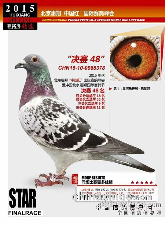 到了2015年春又要送鸽参赛的时候,龙书华没事就天天坐在鸽棚里观察小鸽子,他发现有一对小鸽子又机灵又壮硕,便想把它们送到大棚参赛。当时正好有几位鸽友组队打北京惠翔,计划送鸽30羽打团体。龙书华便选出这对小鸽子放在30羽之中,对他们说,你们都是有钱人,谁愿意替我这两个小鸽子交费?结果大家看了看这俩鸽子都没回应。这时候来了一位河南工薪鸽友,他说:“我相信你龙老师,这对小鸽子我交费。但要改成我的名字单独参赛。”就这样,我的两羽小鸽子从30个团队抓了出来,另用河南鸽友的名字出赛。